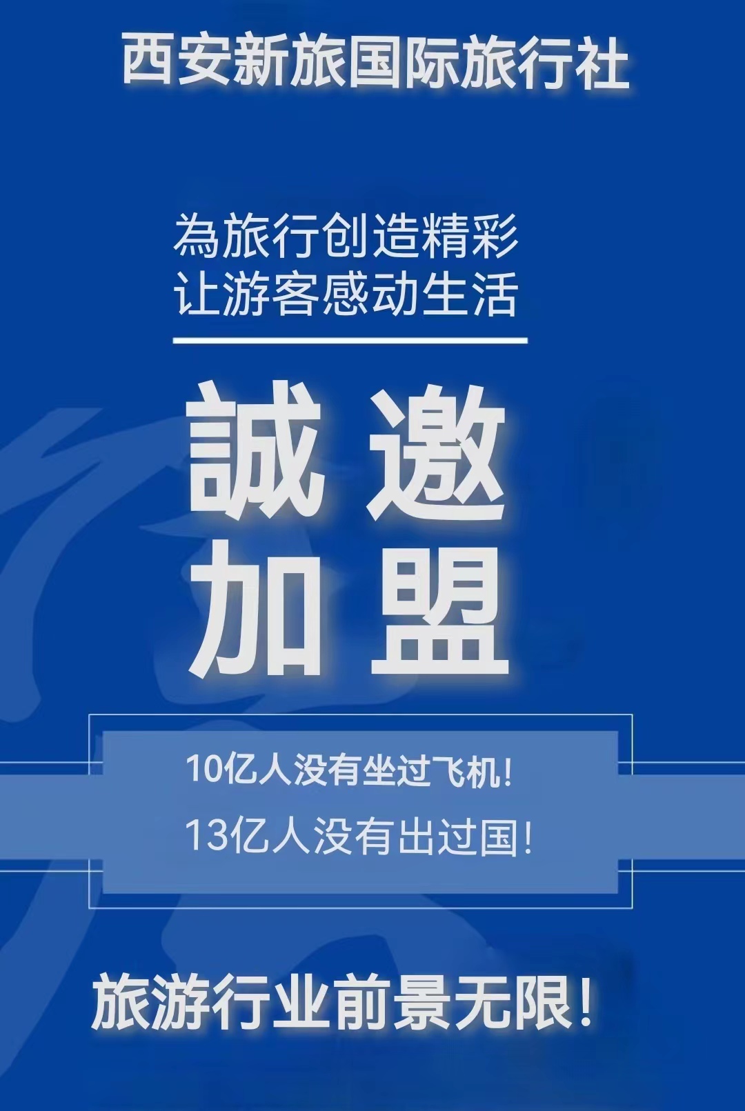 歡迎各地的有識(shí)之士能加盟到我們團(tuán)隊(duì)中來(lái),資源共享、共謀發(fā)展!為旅行創(chuàng)造精彩,讓游客感動(dòng)生活;選擇陜新旅,走遍全世界!