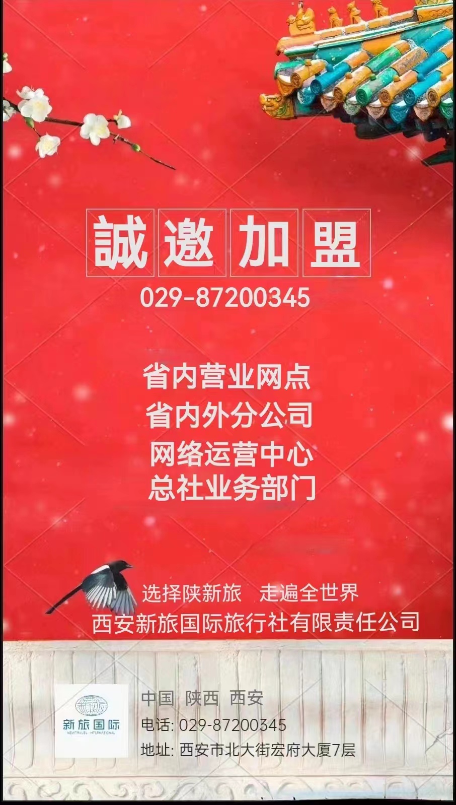 歡迎各地的有識(shí)之士能加盟到我們團(tuán)隊(duì)中來,資源共享、共謀發(fā)展!為旅行創(chuàng)造精彩,讓游客感動(dòng)生活;選擇陜新旅,走遍全世界!