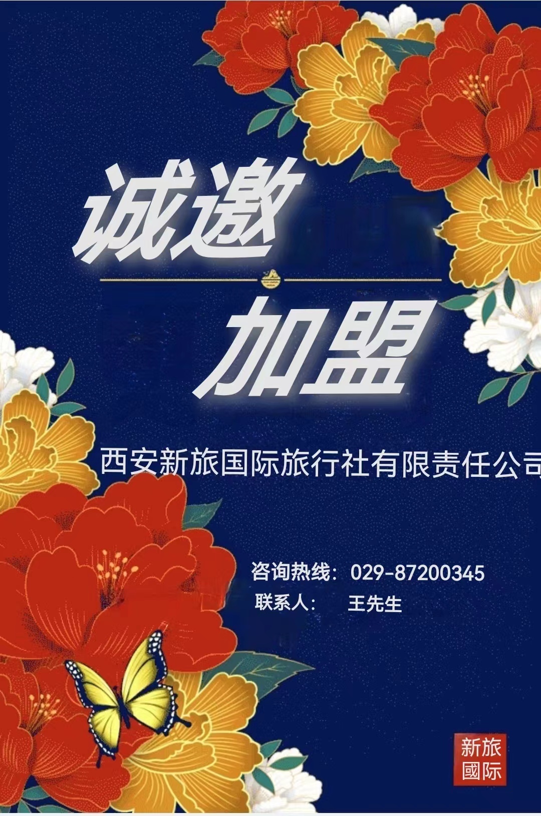 這個(gè)是西安新旅國(guó)際旅行社的電話:029- 87200345