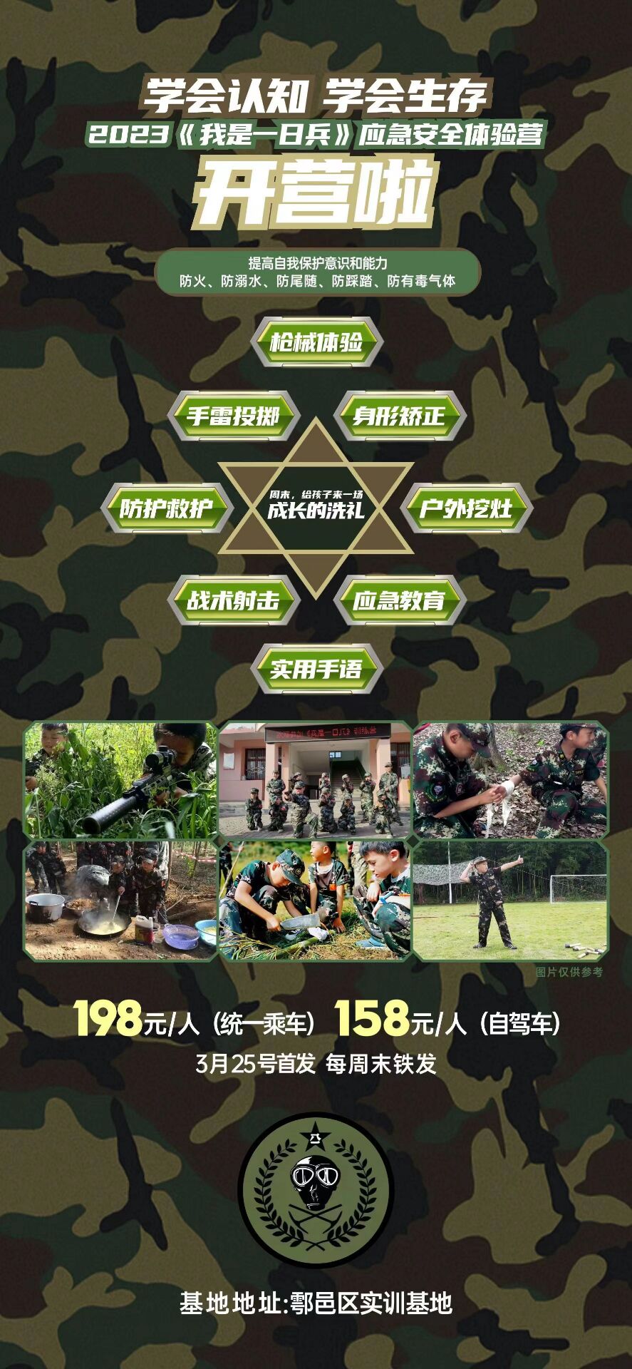 野外挖灶、實(shí)用手語、戰(zhàn)術(shù)射擊、安全教育........